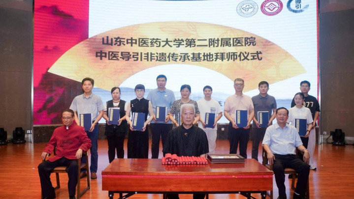 山东中医药大学第二附属医院康复医院名誉院长李丽主持开幕式。作为“国家非遗古本易筋经山东省传承教研基地”所在单位,在本次开幕式上,还举行了“国家非遗古本易筋经导引法”拜师仪式。马兆水等10位人员拜入严蔚冰门下,成为国家级非物质文化遗产第五代传承人及传承骨干,证师孙光荣教授、张立祥书记分别寄语,希望传承不忘本,创新不离宗。
